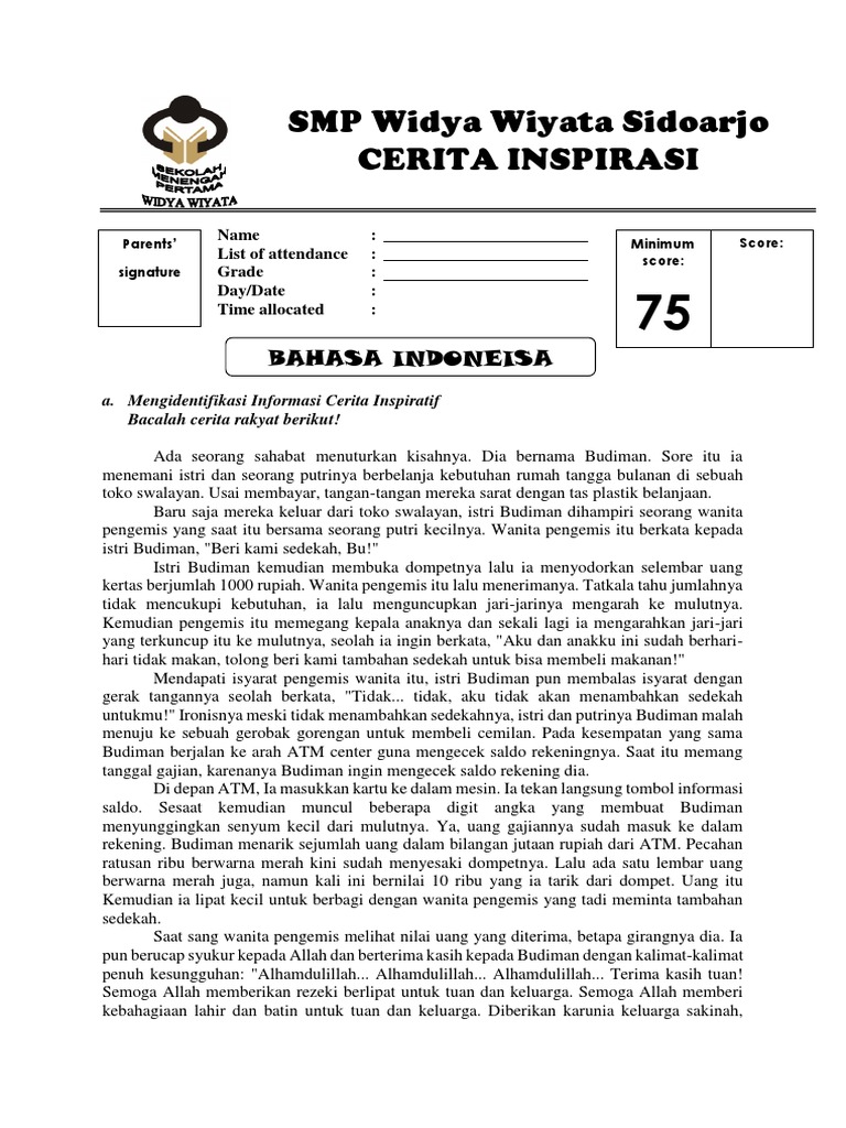 Pagi itu indah sekali di puncak pas. Bahasa indonesia | pada kesempatan kali ini admin akan membagikan kumpulan contoh soal teks cerita inspiratif dilengkapi dengan kunci jawaban terbaru dalam mata pelajaran bahasa indonesia. Sedikit ketakutan, mereka berdua pun mencari sumber suara tersebut. 4 kaidah kebahasaan cerita inspiratif. Contoh cerita inspiratif singkat ini menceritakan tentang seseorang yang terlalu cepat menilai orang lain.